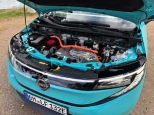 Le moteur de 217 ch et ses périphériques électriques sont placés à l'avant. ©JA