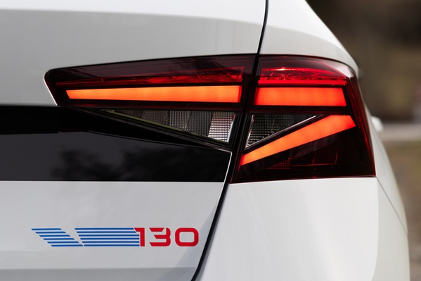 Le caractère sportif de cette Fabia a été renforcé à l'extérieur avec des badges 130 ou une double sortie d'échappement. ©Skoda