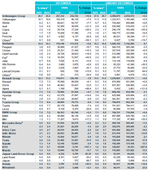 Retrouvez tous les chiffres 2025 de l'ACEA en cliquant ici