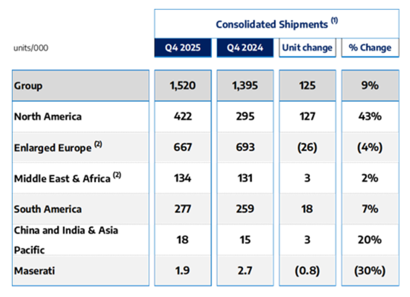 "Cette amélioration significative reflète la normalisation des stocks, contrastant avec l’initiative de réduction menée l’année précédente, ainsi qu’un regain d’activité dans la région, avec des commandes en hausse de près de 150 % au quatrième trimestre 2025 sur un an, principalement grâce aux nouvelles offres et aux gammes renouvelées des marques Jeep, Ram et Dodge", précise le constructeur.