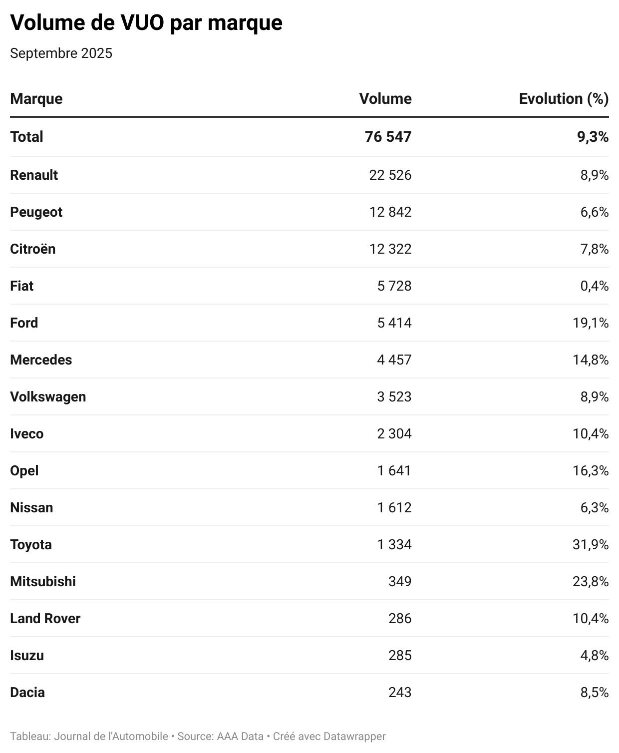 À cette échelle de temps, les trois marques françaises brillent. Elles affichent toutes une croissance supérieure à 5 %. Renault dépasse alors les 192 750 transactions, quand Peugeot approche des 111 700 unités et que Citroën vogue au-delà des 107 100 véhicules échangés.