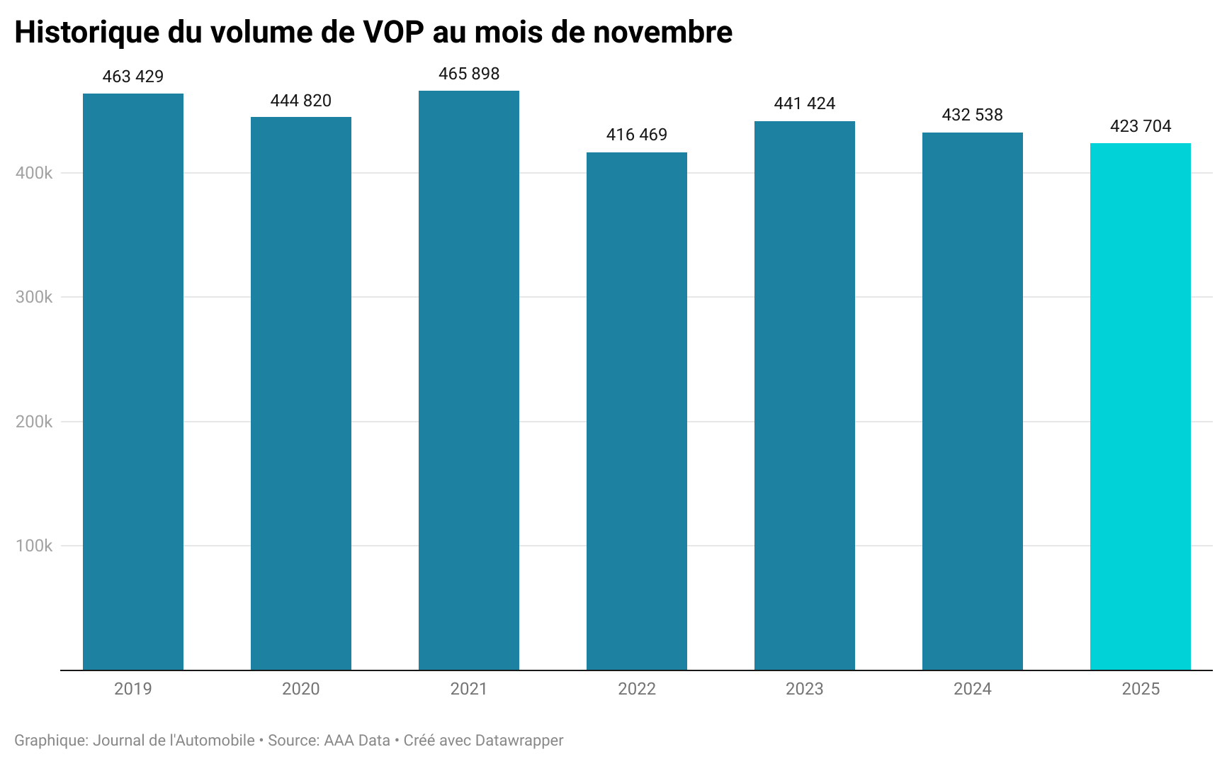 Sur le temps long, la tendance reste tout de même orientée à la hausse. Au terme des onze premiers mois, le marché français des voitures d'occasion pointe à plus de 4,944 millions d'unités, soit 0,4 % de mieux que l'an passé.