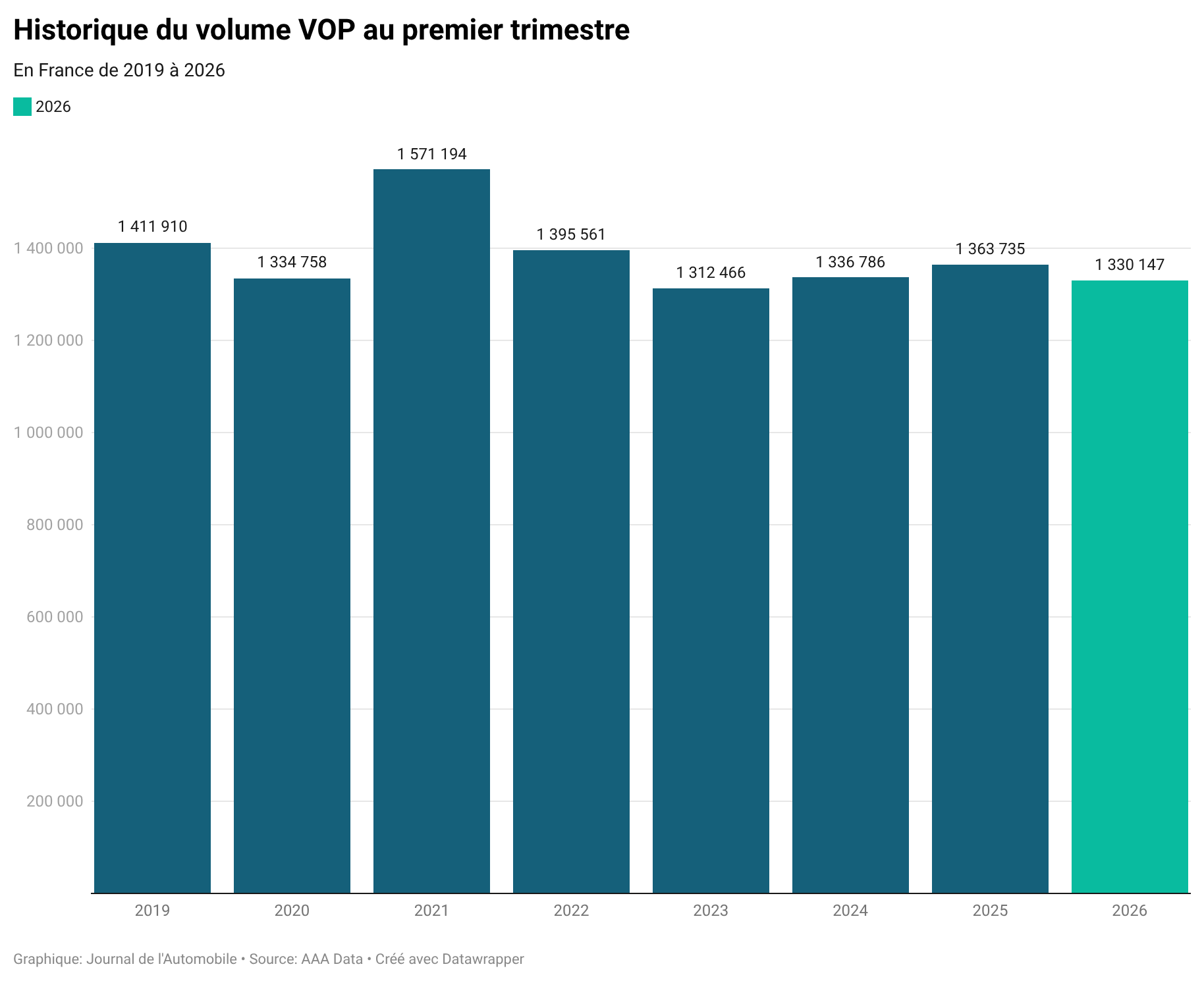 Sur le temps long, le secteur boucle donc l'un de ses plus mauvais premiers trimestres. Depuis 2019, seule l'année 2023 avait moins bien commencé (1,312 million de reventes). Ce qui place l'exercice en cours très loin des standards : en moyenne, au premier trimestre, il s'écoule 1,382 million de voitures d'occasion depuis 2019.