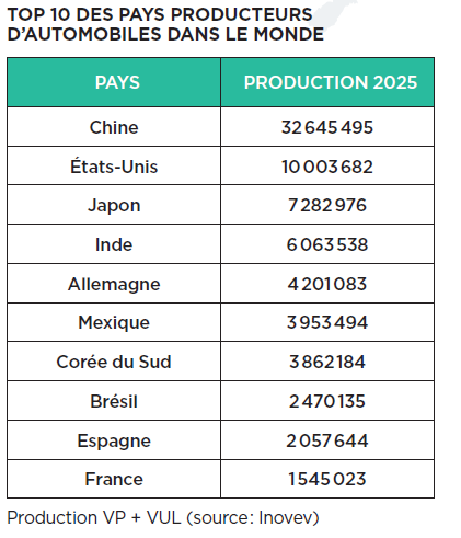 Avec 32,6 millions, la Chine représente désormais près de 37 % de la production mondiale. Soit plus du double de l’Europe ! En prenant de la hauteur, l’axe Chine-Europe-États-Unis constitue près de 65 % du total.