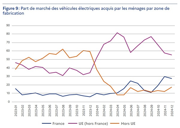 Ce mécanisme s’est traduit par un croisement des courbes sur le marché de l’électrique. Les modèles non éligibles sont passés de 60 % de pénétration fin 2023 à 15 % environ en l’espace d’un trimestre. Radical et efficace.