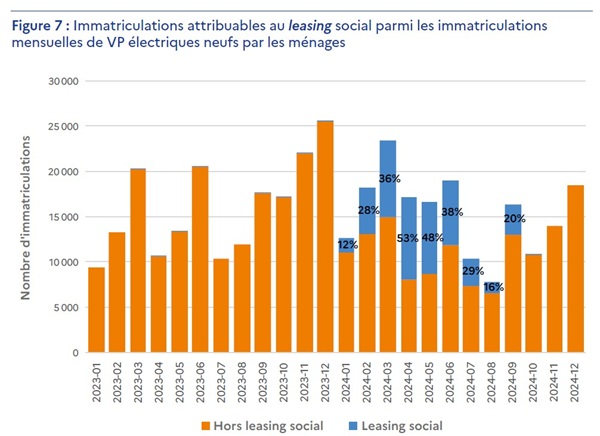 Dans le propos introductif de son "Théma" de décembre 2025, la DGE a déterminé que la diminution de la part des modèles assemblés hors de l’UE observée en 2024 s’explique "à environ 20 % par l’effet du dispositif de leasing social conditionné par l’écoscore, à 40 % par l’effet prix du recentrage des aides sur les modèles existants et à 40 % par des effets hors prix, dont l’introduction de nouveaux modèles éligibles à l’écoscore."