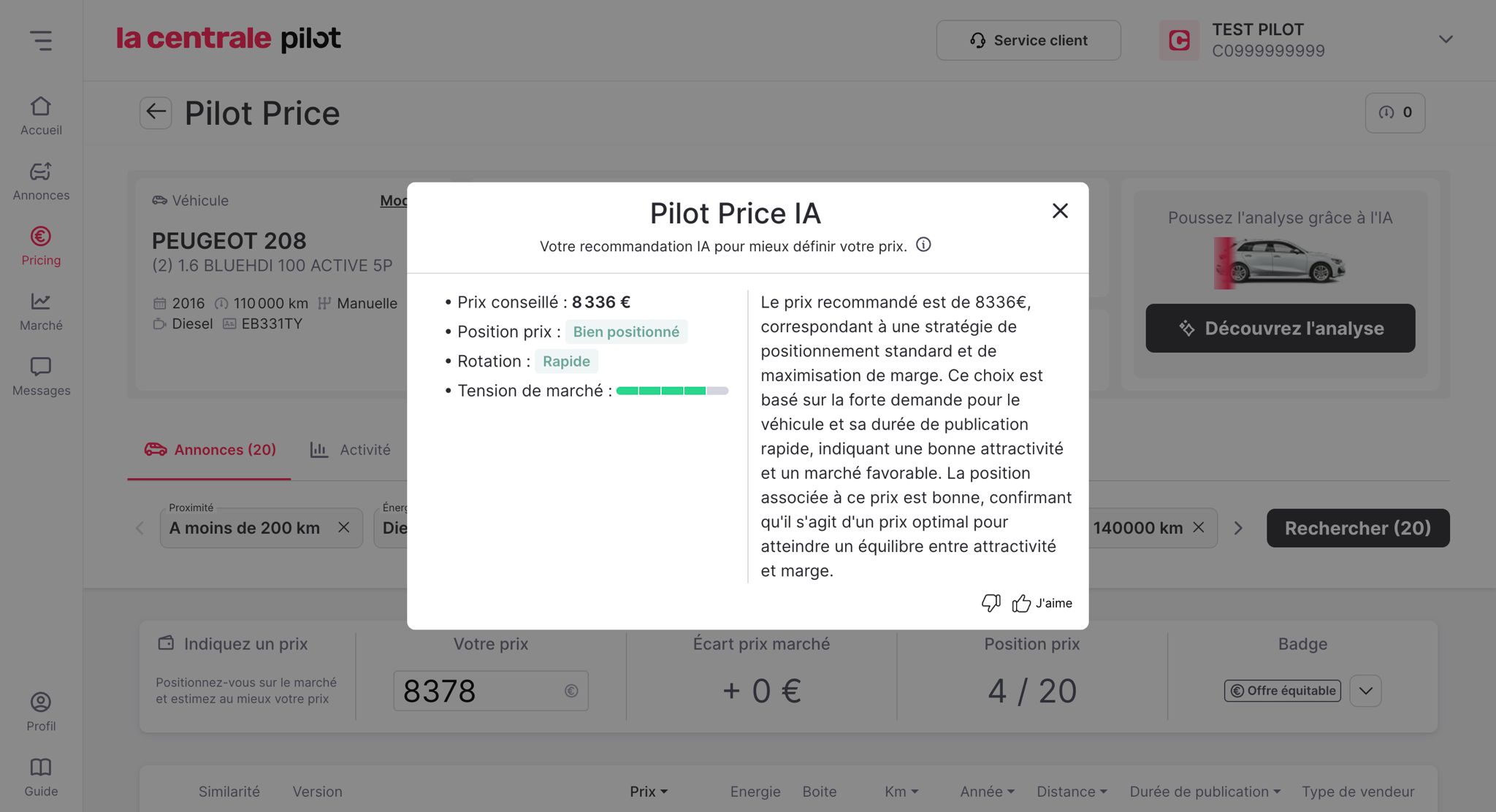 L'interface a été repensée pour mettre cette fonctionnalité en avant, elle qui se faisait visuellement discrète au cours de l'été. Allègrement nourrie aux données de marché depuis des mois, Pilot Price devrait être particulièrement utile aux profils les moins expérimentés des points de vente, ceux qui nécessitent un accompagnement.