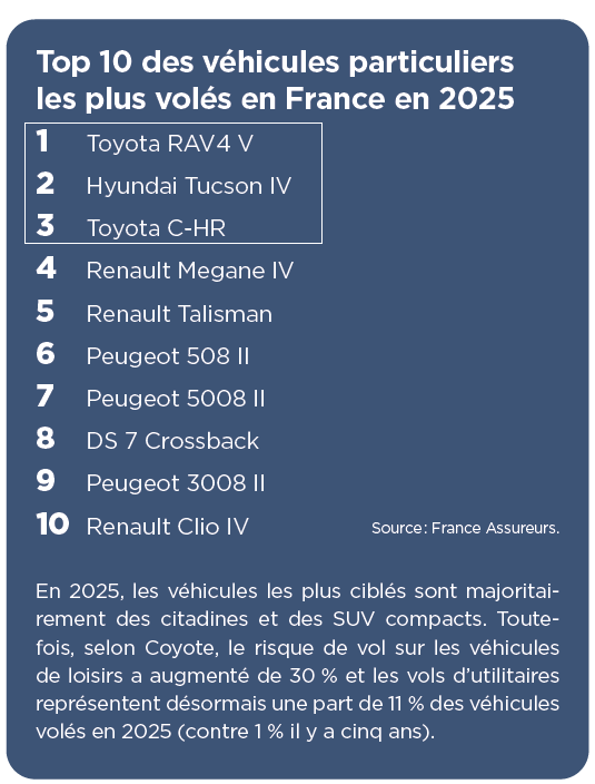 Néanmoins, pour d’autres acteurs, cette décroissance peut être un trompe-l’œil et ne doit pas détourner des vraies problématiques. "Les chiffres de l’année 2025 procurent un faux sentiment d’amélioration. En France, il y a encore un vol de véhicule toutes les 4 min, ce qui reste beaucoup trop important", alerte Stéphane Curtelin, directeur marketing et produits de Coyote.
